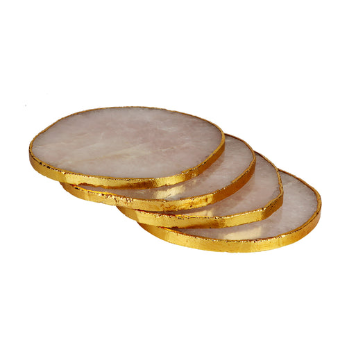 Natural Rose Quartz Coaster Set Of 4 | Tea & Table Coaster