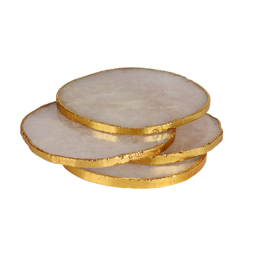 It is an exquisite natural rose quartz coaster. This coaster is made from agate stone that is found as natural deposits formed by the volcanoes and is a semiprecious stone that occurs in volcanic and metamorphic rocks. Its dense crystals make agate stone hard and scratch-proof, creating a perfect set of coasters for your home. The coaster set is decorative and is ideal to be used at a variety of places including your tabletops and your dinner tables.Â