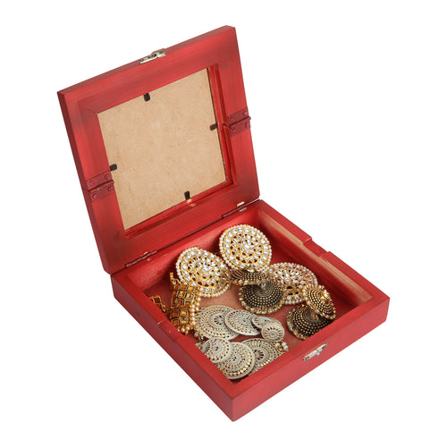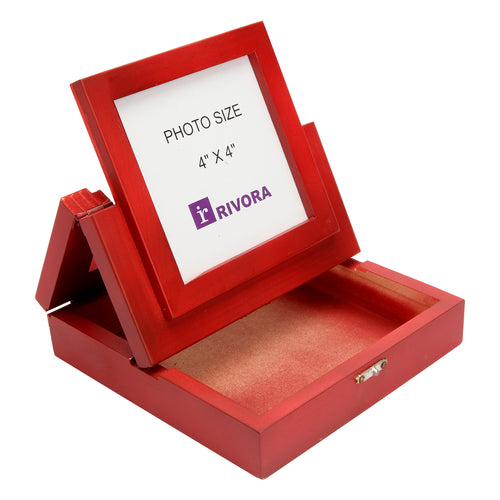 Wood Photo Frame Keepsake Box is an exclusively handcrafted keepsake box made of good quality wood and hand painted, it has a unique foldable pop up photo frame for 4 x 4 size photo. It is a great gift for all occasions, housewarming, birthday, valentines wedding etc. A practical and convenient accessory useful to all age men and women. The item does not include the accessories shown in the picture. This tableware is handmade wood product exclusively crafted from premium quality wood. This product is 100% made in India and handmade by skilled artisans.Â